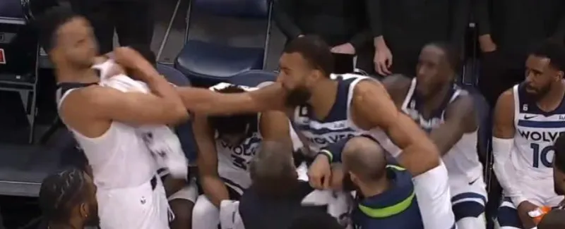 常规赛森林狼对阵鹈鹕的比赛中,李凯尔与戈贝尔在暂停期间因防守责任争执,李凯尔出言激怒戈贝尔,戈贝尔情绪失控挥拳打向李凯尔,被队友迅速拉开。